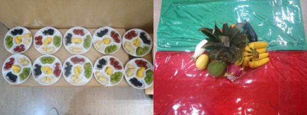 요리 수업 때 사용할 조각과일을 접시에 예쁘게 담아 두고,