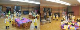 강당이 변신 되었어요. 오늘의 멋진 꼬마요리사 친구들이 입장하고 있답니다.