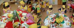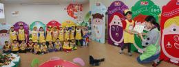 빨강,노랑,초록,보라,하얀색 과일과 채소 친구들이 교실에 가득 만세반은 과일 향기가 가득하네요.