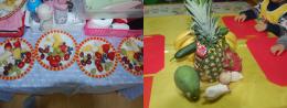우리 친구들을 위해 진짜 과일과 채소가 책상위에 올라 왔어요.