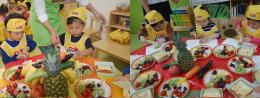 바나나~파인애플~~ 하고 과일박사가 된 기념사진을 찍고 있어요.
