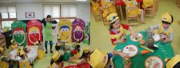 5가지 색깔 친구 잎에 과일과 채소를 붙여 주고 영양 선생님께 골고루 먹어야 되는 이유에 대해 알아 보았어요.