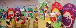과자, 빵, 초콜렛 보다는 과일과 채소를 골고루 먹을 것을 약속 하면서 푸른 하늘반 친구들에게 과일 박사 수료증을 전달 하고 있어요.