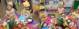 “선생님 ~ 노란 파인애플을 우리 몸에 좋아요.” 라며 파인애플을 쏙 넣는 우리 친구~~