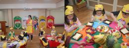 강당에 알록달록 칠판을 설치하고 요리수업재료도 준비했답니다.