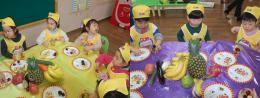 강일 새롬어린이집 친구들과 요리 선생님이랑 5가지 과일과 채소를 골고루 먹을 것을 약속하고 과일수료증을 받았답니다.