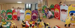 푸른반 친구들은 벌서 앞치마를 입고 수업을 준비하고 있답니다. 선생님들은 푸른반 교실을 이렇게 알록달록하게 변신했답니다.