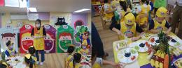 “노란 파인애플은 대변을 잘나오게 해줘요. 빨간 토마토는 피를 깨끗하게 해줘요.” 라며 영양 선생님께 배웠던 걸 말하는 우리 친구들~~