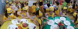 요리 선생님과 5가지 색깔 과일이 어디에 좋은지 다시 알아보면서 과일샐러드를 만들어봐요.