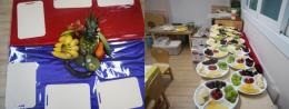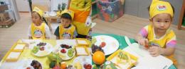 요리 수업에 사용할 과일들도 접시에 담아 한쪽에 준비해두고 이제 새들어린이집 친구들을 만나 볼까요?