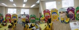 수업이 진행되는 강당에서 수업 준비를 시작했답니다. 어떤 친구들을 만날지 강당을 과일과 채소로 가득 교실로 만들어 볼까요?