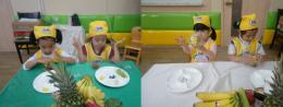 우리 친구들은 가장 큰 바나나 조각을 먹으면서 “세균아 물러가라.”라고 얘기했어요~