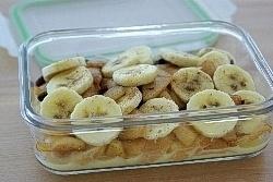 그 위에 사과조림과 바나나를 골고루 얹고,