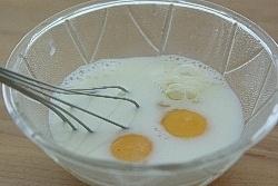 소스 : 달걀 1개, 달걀노른자 1개, 설탕 1큰술, 바닐라엣센스 조금, 우유 180cc