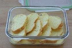 내열용기에 바게트를 깔고 준비한 소스를 골고루 부어준다
