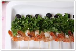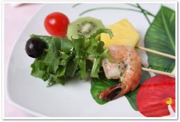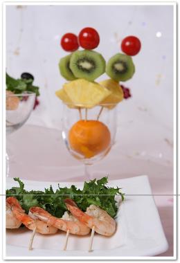파마산치즈 새우꼬치와 과일꼬치를 곁들여 놓으니