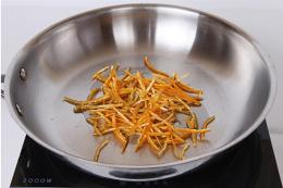 자 요기서 곱게 채친 귤껍질은 기름을 살짝 두르고