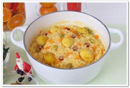 귤색이 곱게 물든 주황색 밥이 향기롭습니다.