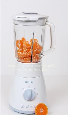 귤껍질을 벗기고 필립스 믹서기에 넣고 슝~~ 갈아줬습니다.