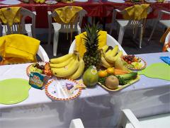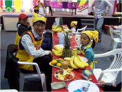 뚝딱 ! 뚝딱! 테이블과 칠판.. 과일들이 하나 하나 선생님들이 안보일 정도로 움직여서.. 변신 완료!