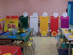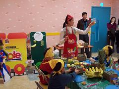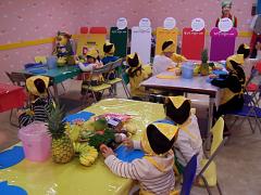 우리 친구들에게 5가지 색깔의 과일과 야채를 골고루 먹어야 된다고 열심히 알려 주고 있답니다.