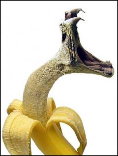 바나나 괴물도 있다. 물리면 직빵으로 돌아가실 것 같다. 바나나 껍질이 열리는 순간 집을 쩌억~ 벌리고는 내가 널 먹어주마!!! 이러고 덤벼드는 장면 같다. 에고 무서워라. 저 이빨 좀 보게... 출처는 떠도는 웹에서...