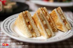 2. 바삭하게 토스터기에 구운 식빵에 밑에는 딸기잼 살짝 바르고, 그 위에 땅콩 버터를 넉넉히 양쪽 식빵에 발라 주고...