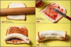 주재료: 식빵(3장), 바나나(2개), 땅콩잼(적당량), 딸기잼(적당량)
