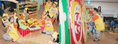 노란 과일 파인애플을 잘라 화분에 쏙쏙!! “ 우린 함께 도와가면서 해요.”라며 열심히 서로 도와 가면서 하는 친구!!
