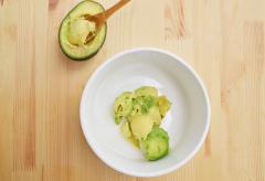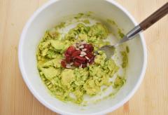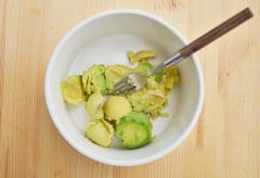 2> 아보카도소스만들기: 아보카도를 으깬 후 견과류와 소금, 후추를 넣고 섞어요.
