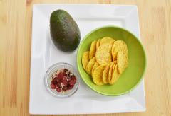 아보카도1개,나쵸칩 20개내외,견과류믹스2큰 술, 소금, 후추
