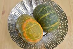 2. 단호박 찌기: 단호박을 찜기에 넣고 10분 쪄요.