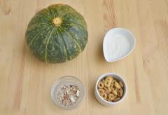 단호박 1통, 플레인 요거트 200g. 씨리얼 20g, 여러 가지 견과류 30g