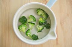 2. 데치기: 곤약과 브로콜리를 데쳐요.