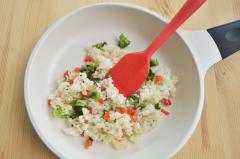 3. 볶기: 프라이팬에 기름을 두르고 브로콜리와 파프리카를 볶은 후 밥을 넣고 볶아요.