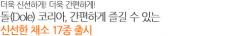 [2015년 6월 22일]세계적인 청과회사 돌(Dole) 코리아(대표이사 제임스 프리데옥스)는 간편하게 즐길 수 있는 신선한 채소 제품 17종을 출시했다.