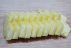 파인애플은 반으로 썬 다음 8등분으로 썰어주세요.