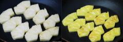 달군 프라이팬에 파인애플을 넣어 양면을 노릇노릇하게 구워주세요