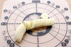 바나나를 작게 썰어주세요. 크기는 취향껏 썰어주심 되어요.