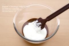 녹여둔 초코렛에 휘핑한 생크림을 1/3정도 덜어 섞어주세요.