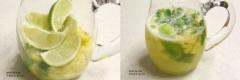 피쳐에 설탕, 파인애플 민트잎, 라임즙을 넣고(*장식용 민트 두줄기는 남겨둡니다)