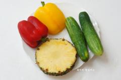 파인애플 1/4토막, 오이 작은걸로 두개, 파프리카 노랑1/2개, 빨강1/2개