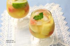 스파클링 화이트와인2컵, 파인애플주스1컵, 설탕2큰술(가감가능), 얼음약간, 민트잎