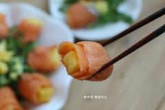 특별한 요리 비법이 없어도 돌돌 말아만 주어도 예쁘고 폼 나는 요리가 연어가 아닌가 생각이 드는데요.