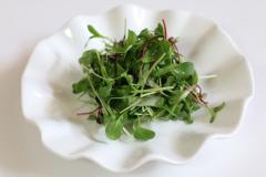 파인애플 소스를 어린잎채소위에 뿌려 주었어요.