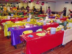 한 가족당 한 테이블이라,, 세팅하기 바쁜 우리선생님들..