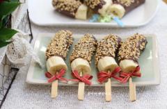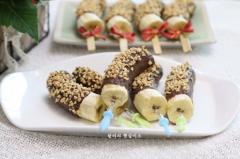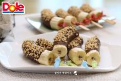 바나나요리~바나나 초코 꼬지 하나씩 들고 먹어요.
