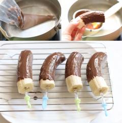 바나나 빼빼로 같은 바나나 초코꼬지를 만들어 먹었어요.