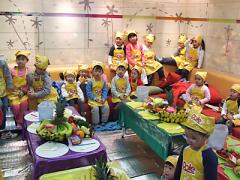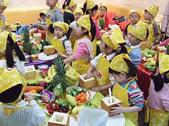 빨간,노란,초록,보라,하얀색 과일을 찾은 후 잘라 컵 속에 담고는 우린 다했죠?