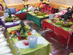 "이게 그 유명한 파파야~~ "노란색 파파야 속이 궁금했는지 너무 나도 신기하게 관찰하는 친구들